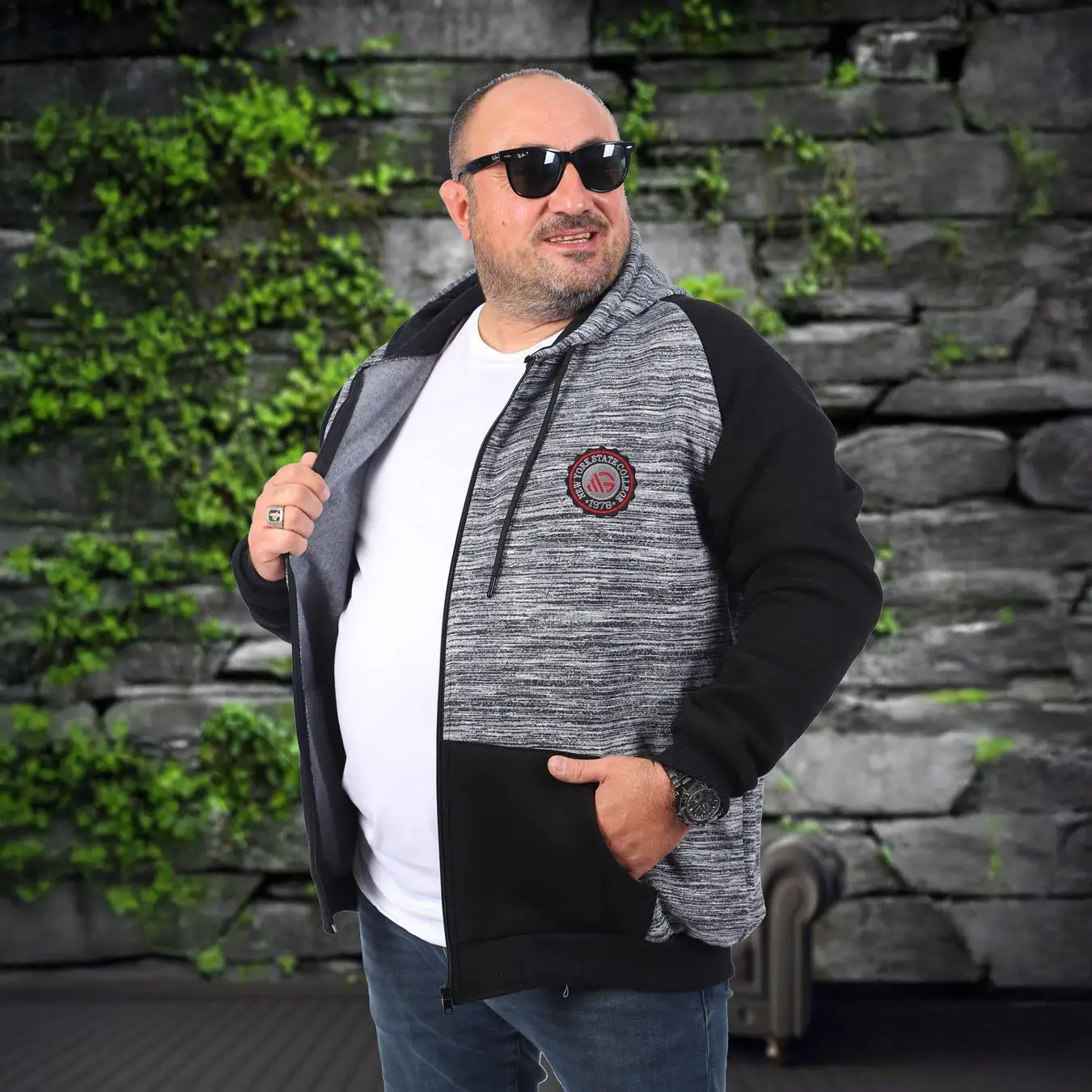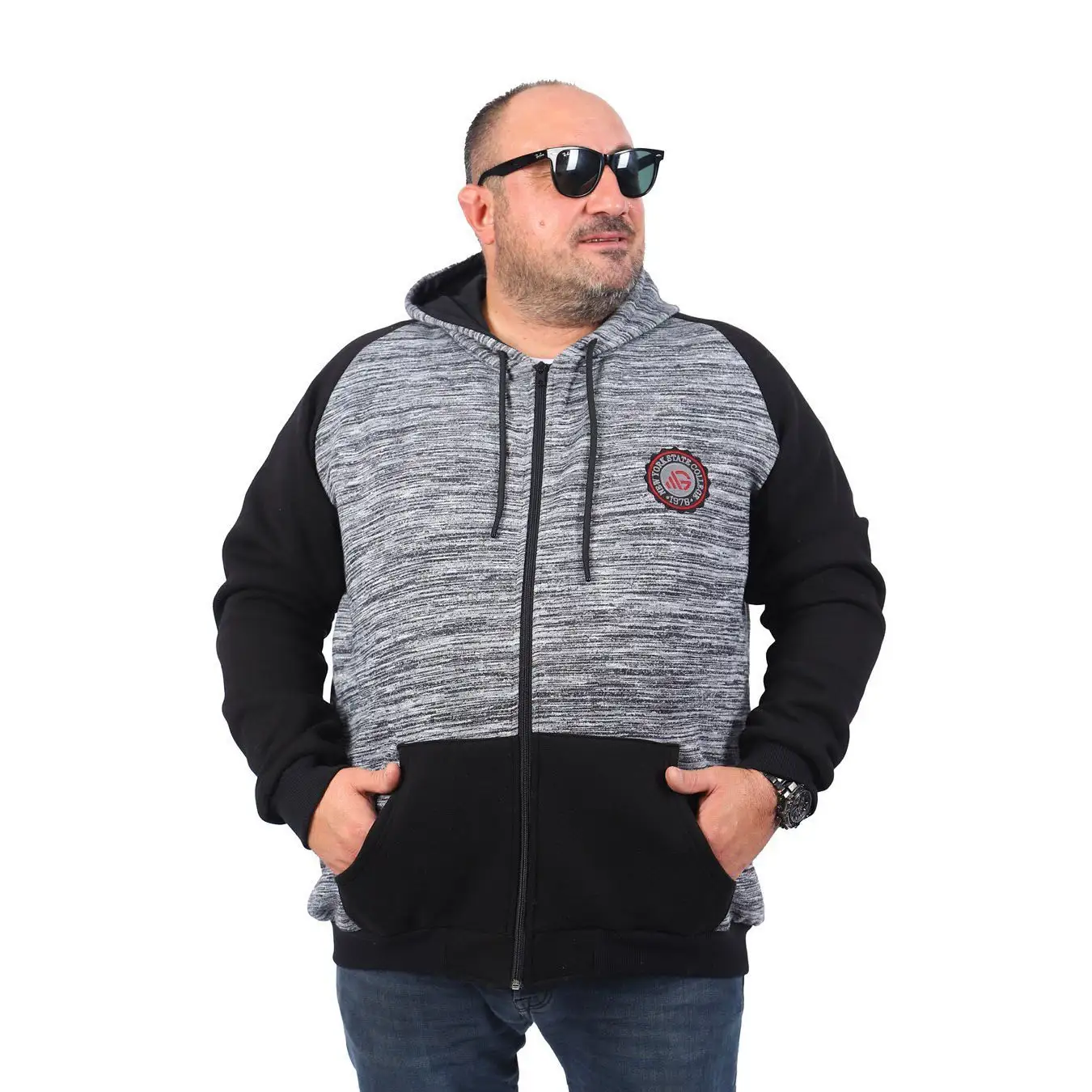 - Moderan izgled: Jedinstvena kombinacija melirane crne boje i crnih detalja na rukavima i džepovima pruža sportsko-elegantan stil