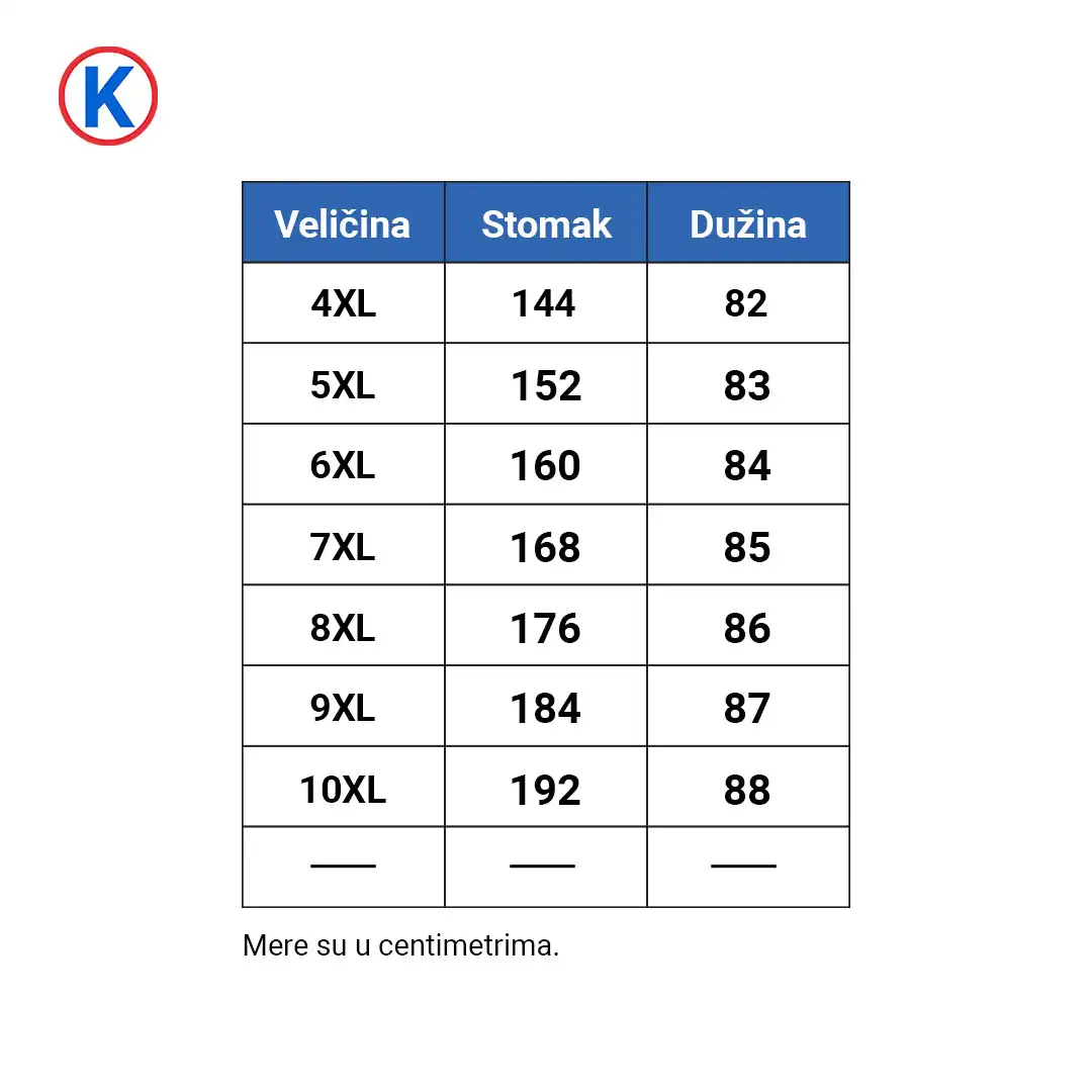 Dostupne veličine: 5XL, 6XL, 7XL, 8XL, 9XL, 10XL